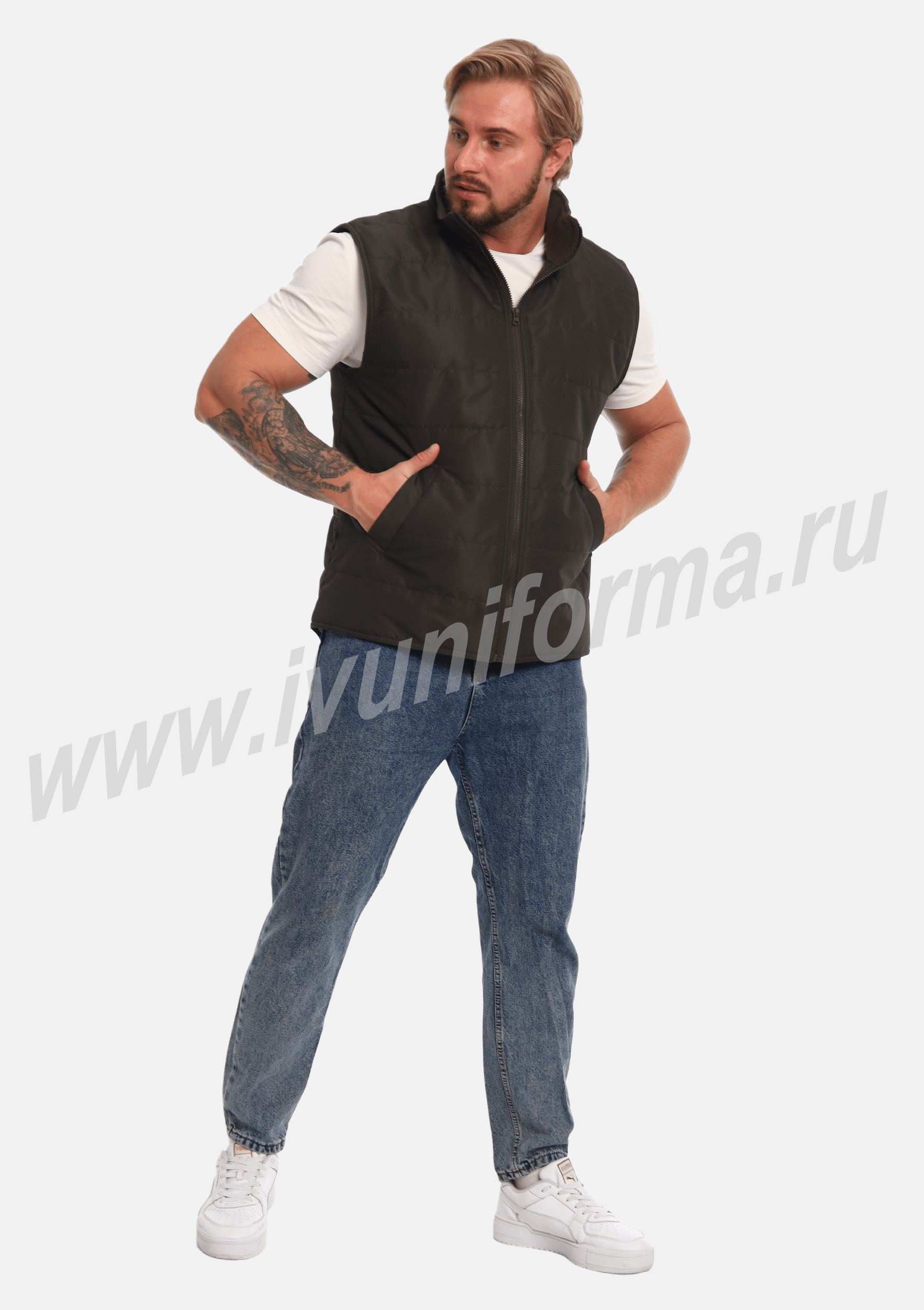 Улучшенный утепленный жилет на молнии с двумя боковыми карманами в нижней части и одним потайным карманом на молнии. Частая стёжка изделия обеспечивает надёжную фиксацию утеплителя, предотвращая его скатывание после стирки. Ткань жилета весьма практична и проста в уходе, не намокает, не продувается, не выцветает на солнце, даже после многократных стирок остается в первоначальном виде. Жилет имеет воротник-стойку с внутренней флисовой отделкой. Жилет является универсальным для использования, как мужчинам, так и женщинам.